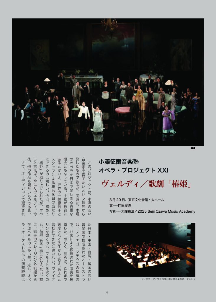 ’25『音楽現代』5月号「小澤征爾音楽塾 オペラ・プロジェクト ヴェルディ椿姫」